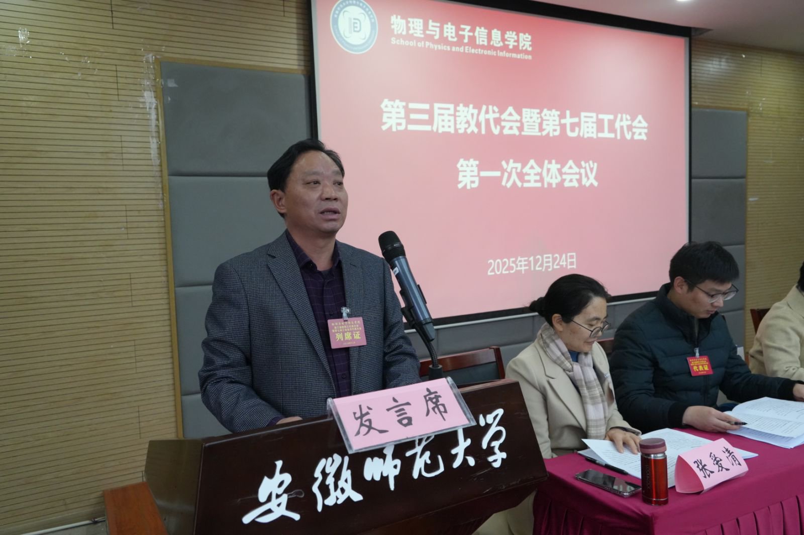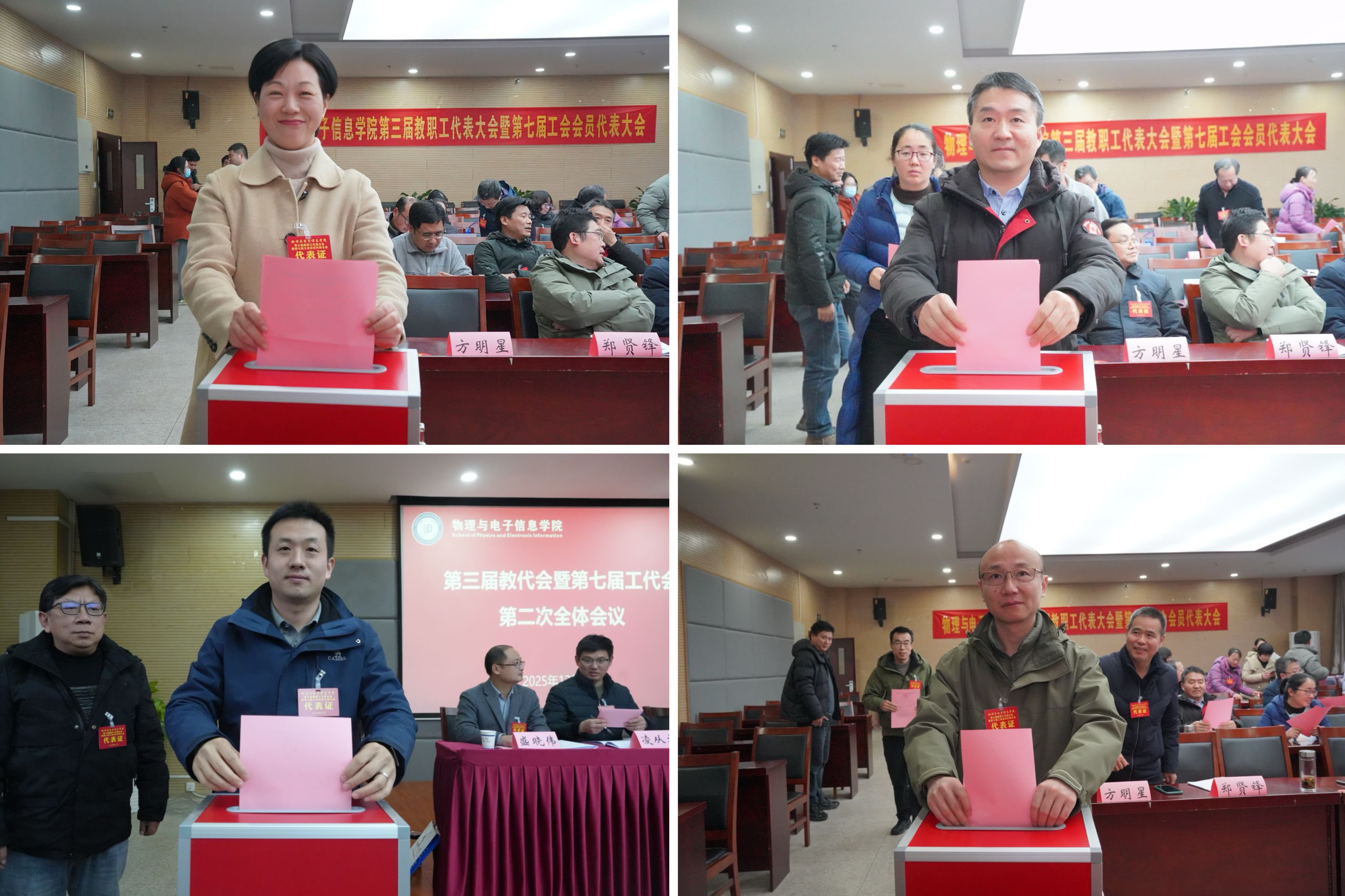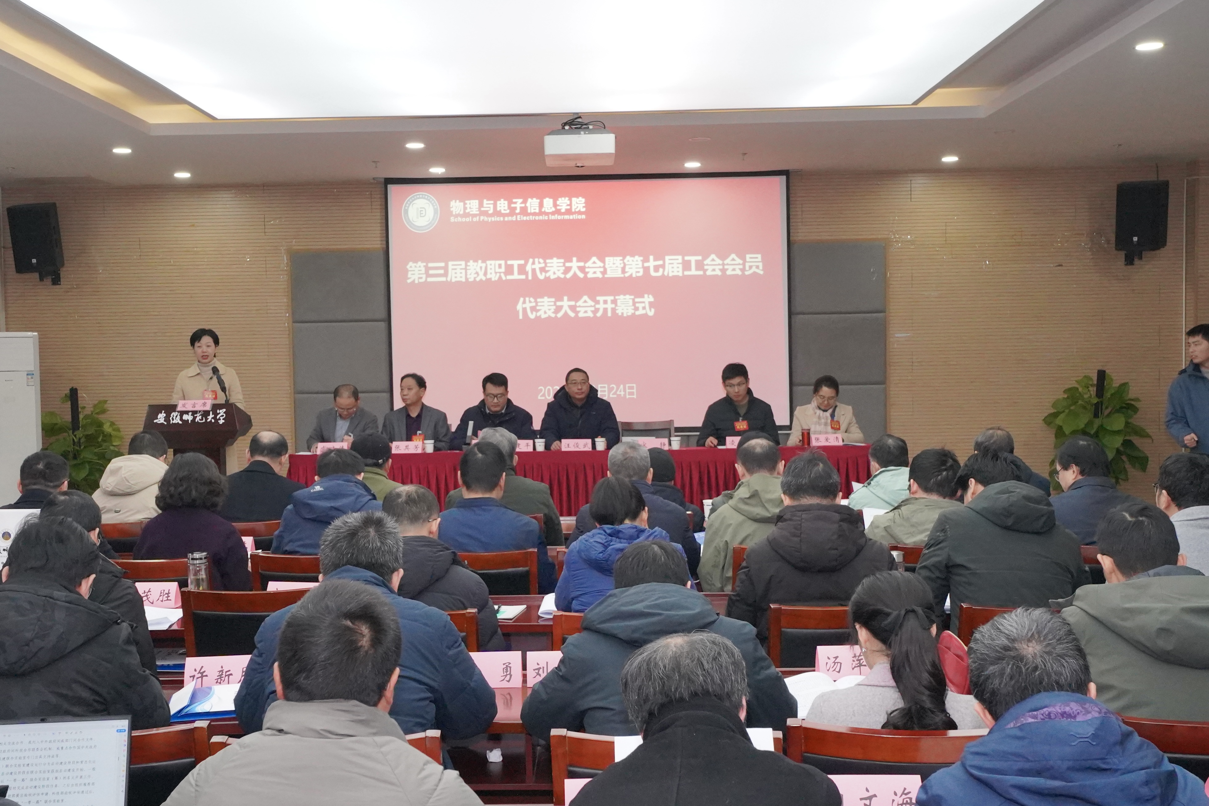 在物电楼304报告厅召开第三届教职工代表大会暨第七届工会会员代表大会。校教代会执委会副主任、机关党委书记汪俊武受邀出席,退休教师代表作为特邀人员列席会议,学院全体教代会和工代会代表出席会议。会议由学院党委书记宋静、院长吕建平分阶段主持。