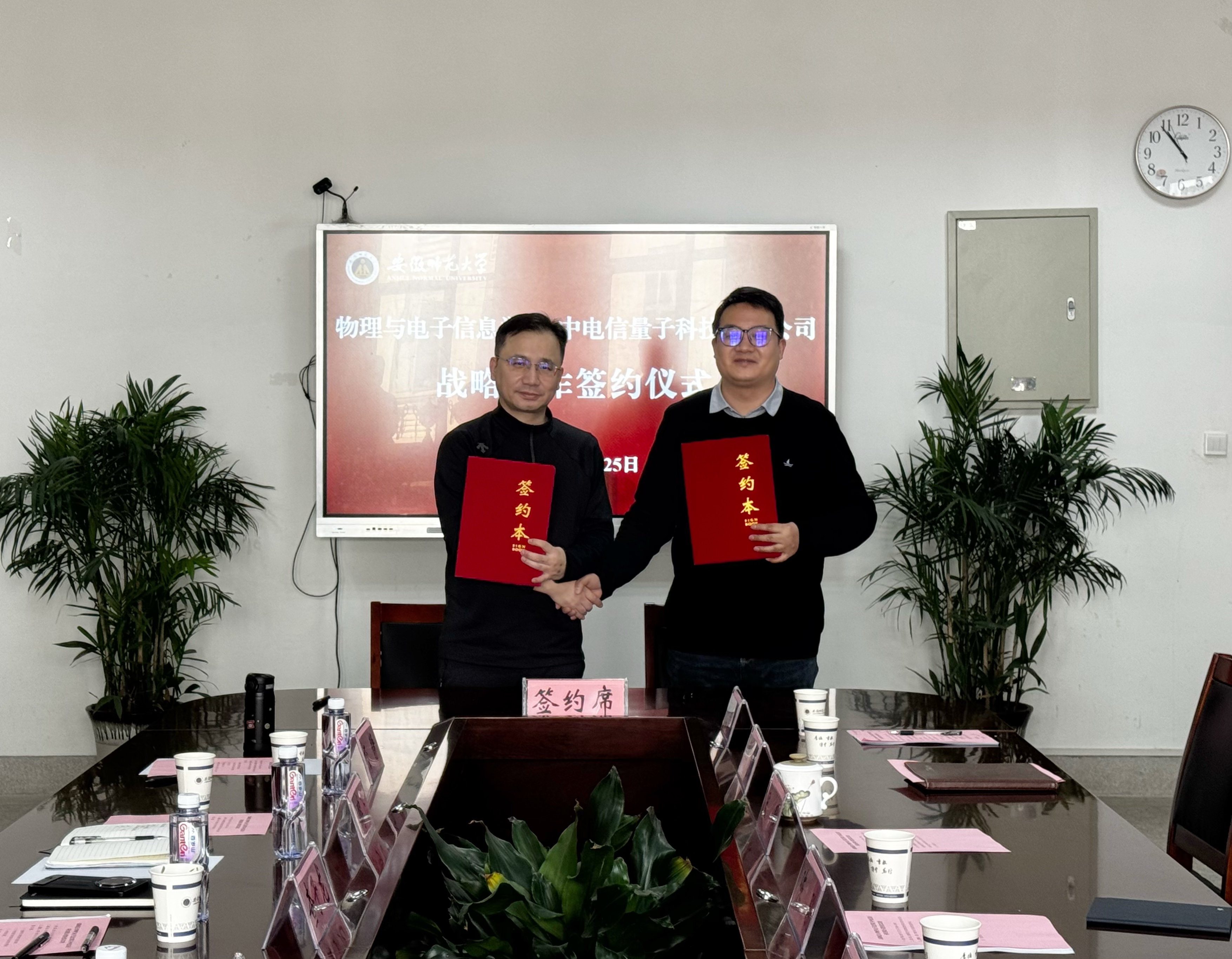 与中电信量子科技有限公司举行战略合作签约仪式。中电信量子科技有限公司总经理查子龙、量子计算和精密测量事业部教育行业总监朱鹏飞,中国电信股份有限公司芜湖分公司副总经理陈佳、教育行业客户部总经理蒋立君、本科总监杨静,校团委书记陈骁、以及彩票app