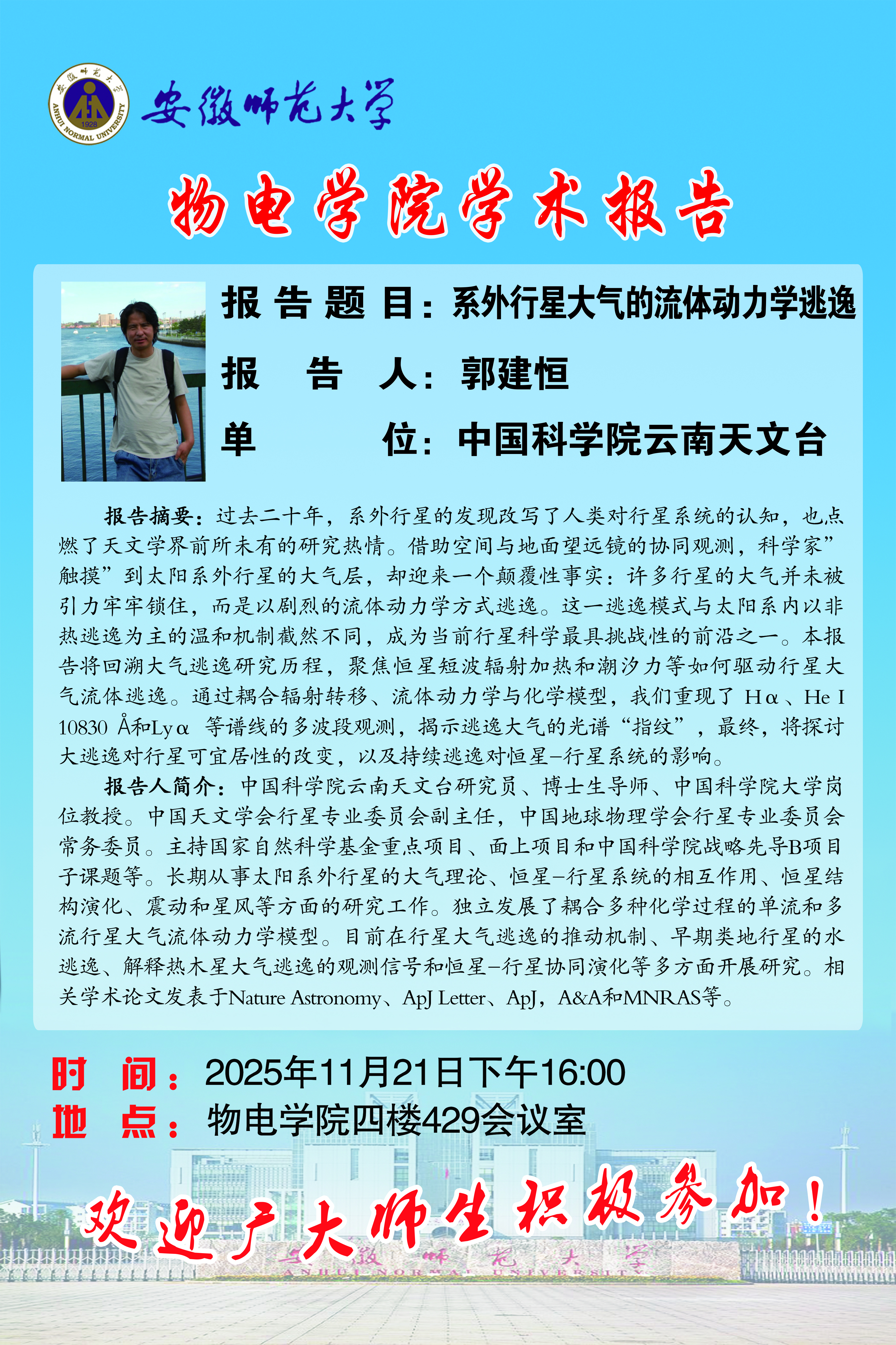 地址:花津校区-安徽省芜湖市九华南路189号 邮编:241000 电话:0553--3869894