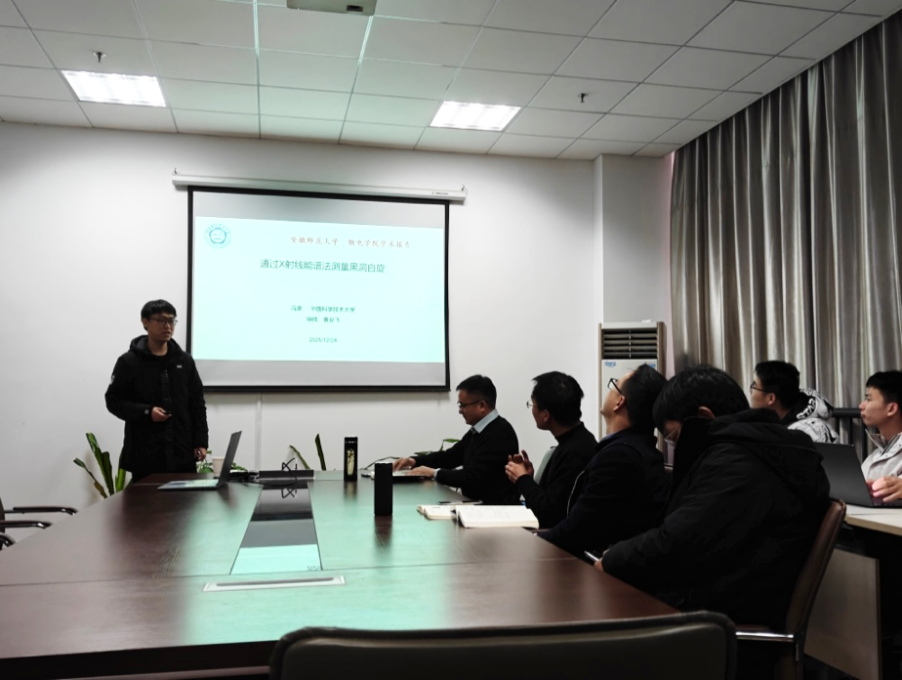 在报告会上,冯源介绍了黑洞自旋为我们提供了黑洞形成和演化过程的重要线索。目前,可以通过引力波探测或X射线能谱法来测量黑洞自旋。引力波天文学探测到的大多数并合前黑洞的自旋较低,这表明黑洞的初始自旋通常较低。另一方面,X射线双星系统中的许多吸积黑洞的自旋速度很高,特别是拥有大质量伴星的双星系统。黑洞X射线双星与双黑洞系统之间自旋的显著差异揭示了黑洞形成机制的多样性。目前用于自旋测量的方法存在显著的系统误差:X射线反射能谱法将观测到的能谱分解为入射谱和反射谱,此过程存在不确定性;热连续谱拟合方法所采用的模型预测吸积盘不稳定,与实际观测结果相矛盾。正在规划的新探测技术将提升我们对吸积黑洞的理解,更精确地测量黑洞自旋。报告结束后,与会师生与冯源就相关问题进行了热烈的讨论和交流。