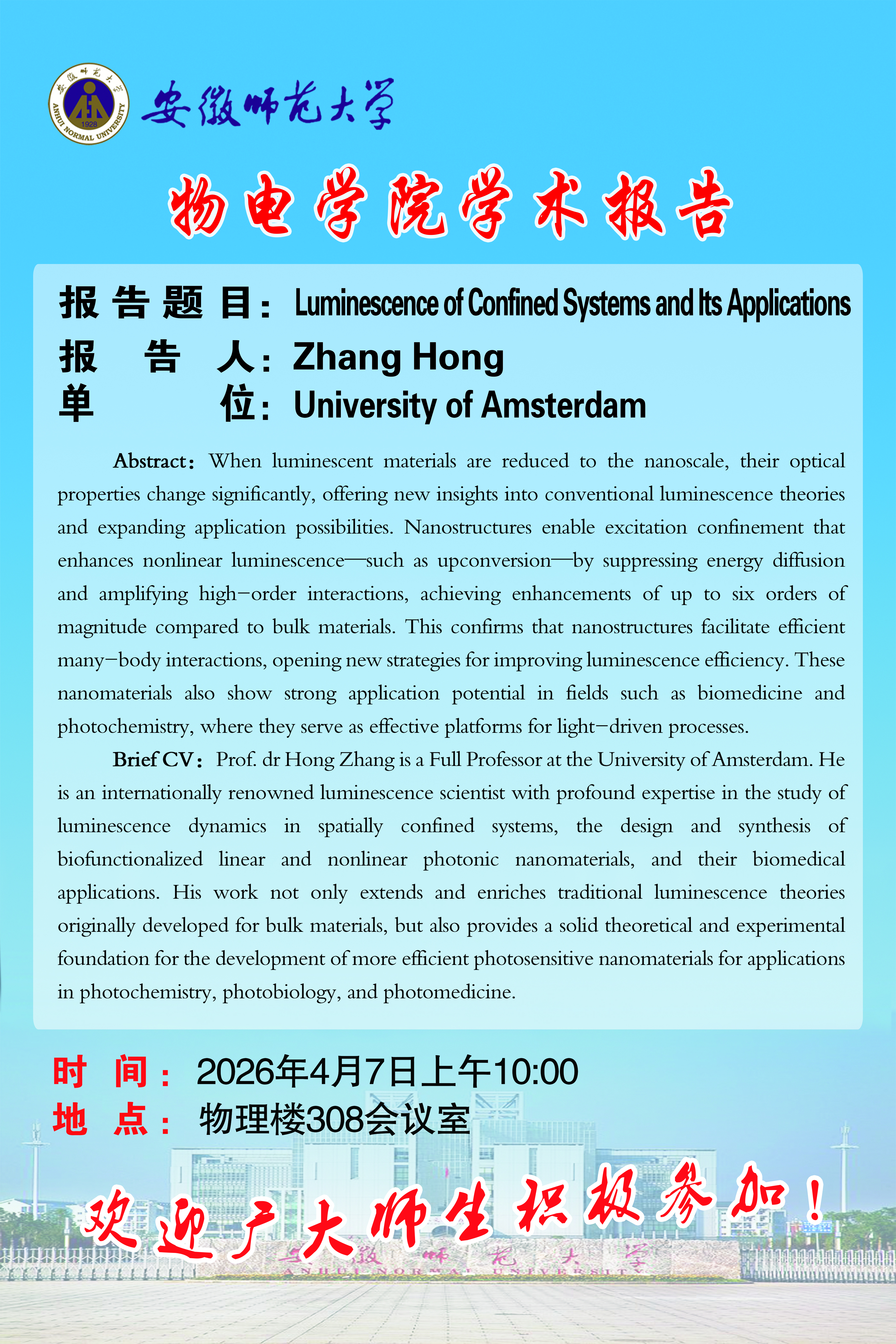 地址:花津校区-安徽省芜湖市九华南路189号 邮编:241000 电话:0553--3869894